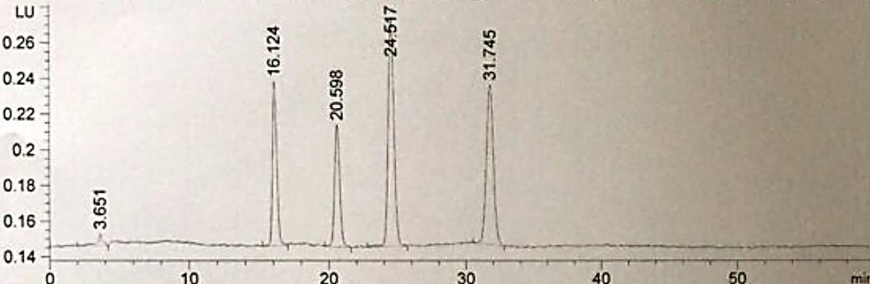 方法:GB 5009.28-2016 色谱柱:Titank C18 5μm 150×4.6mm(货号:FMF-5560-EONU) 流动相:甲醇-乙酸铵溶液(0.02mol/L)(5:95)