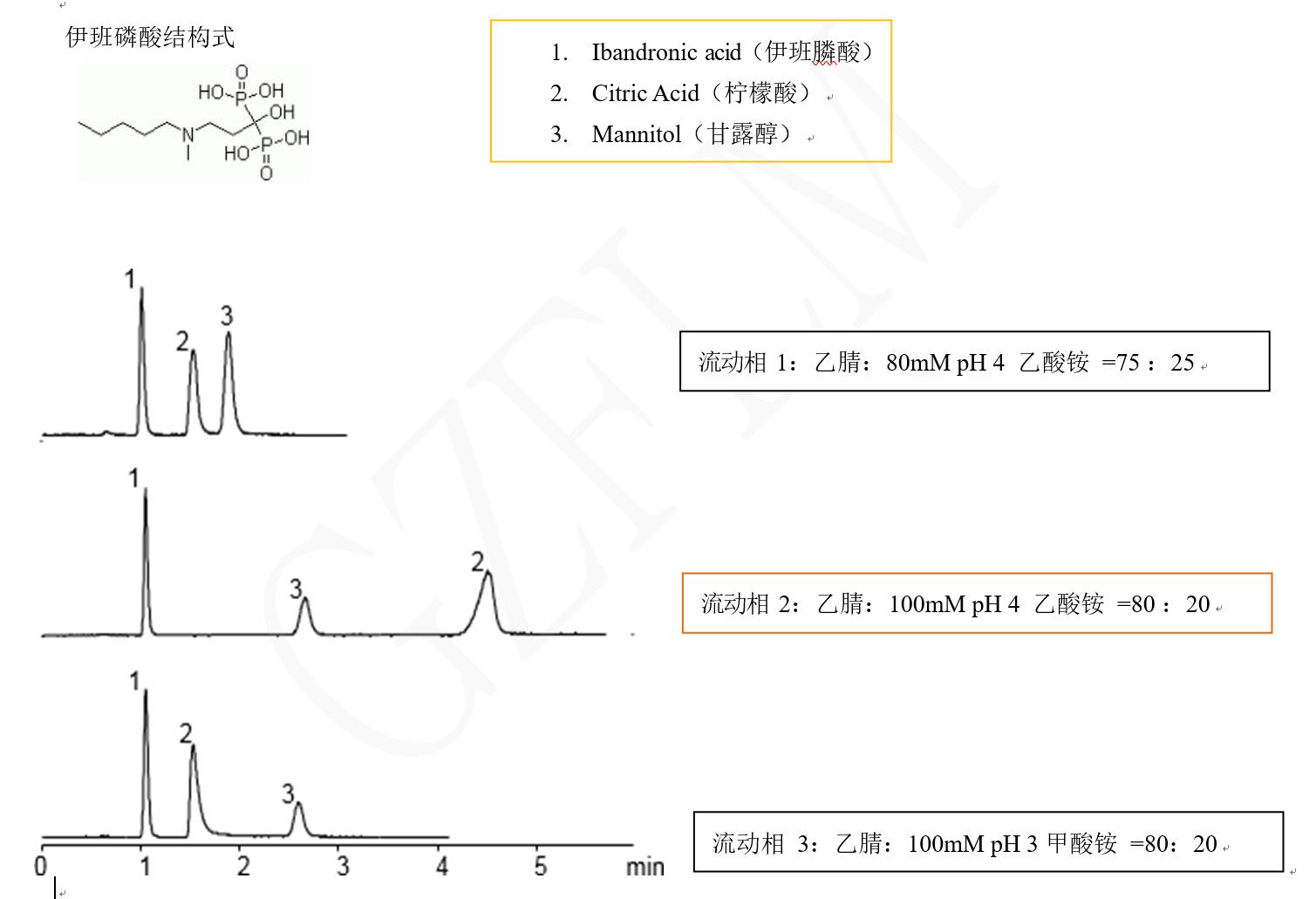 【菲罗门Comix色谱柱】伊班磷酸, 柠檬酸与甘露醇的液相分析
