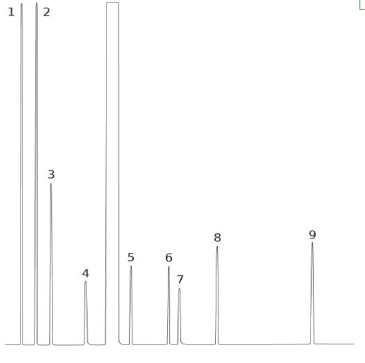 升温程序:35℃ , 2.5℃ /min, 130℃ 载气:氢气 , 40 kPa
