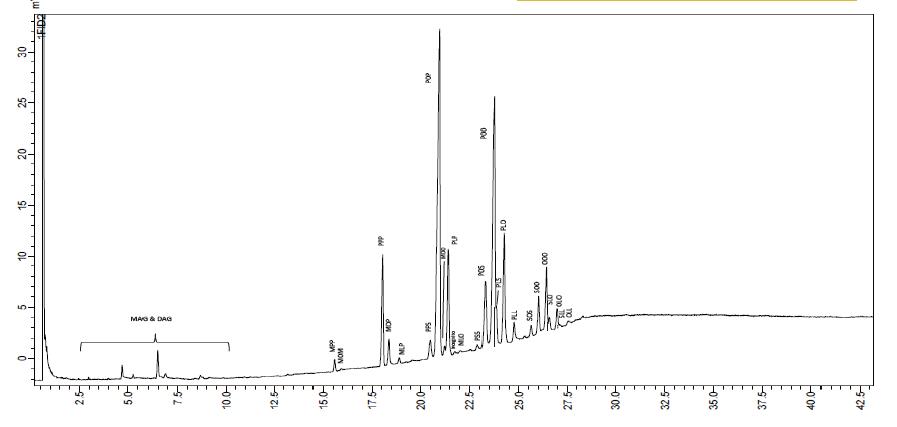 样品:30 毫克棕榈油溶解于 4 毫升异辛烷