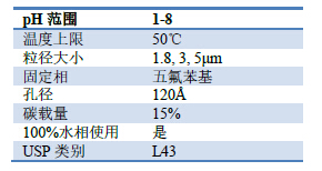 - 五氟苯基键合相,可提供疏水作用、π-π 作用、偶极相互作用、氢键作用等。因此,对芳香族化合物和含硝基、卤素的化合物等,特别是对极性化合物和异构体,具有强大的分离能力