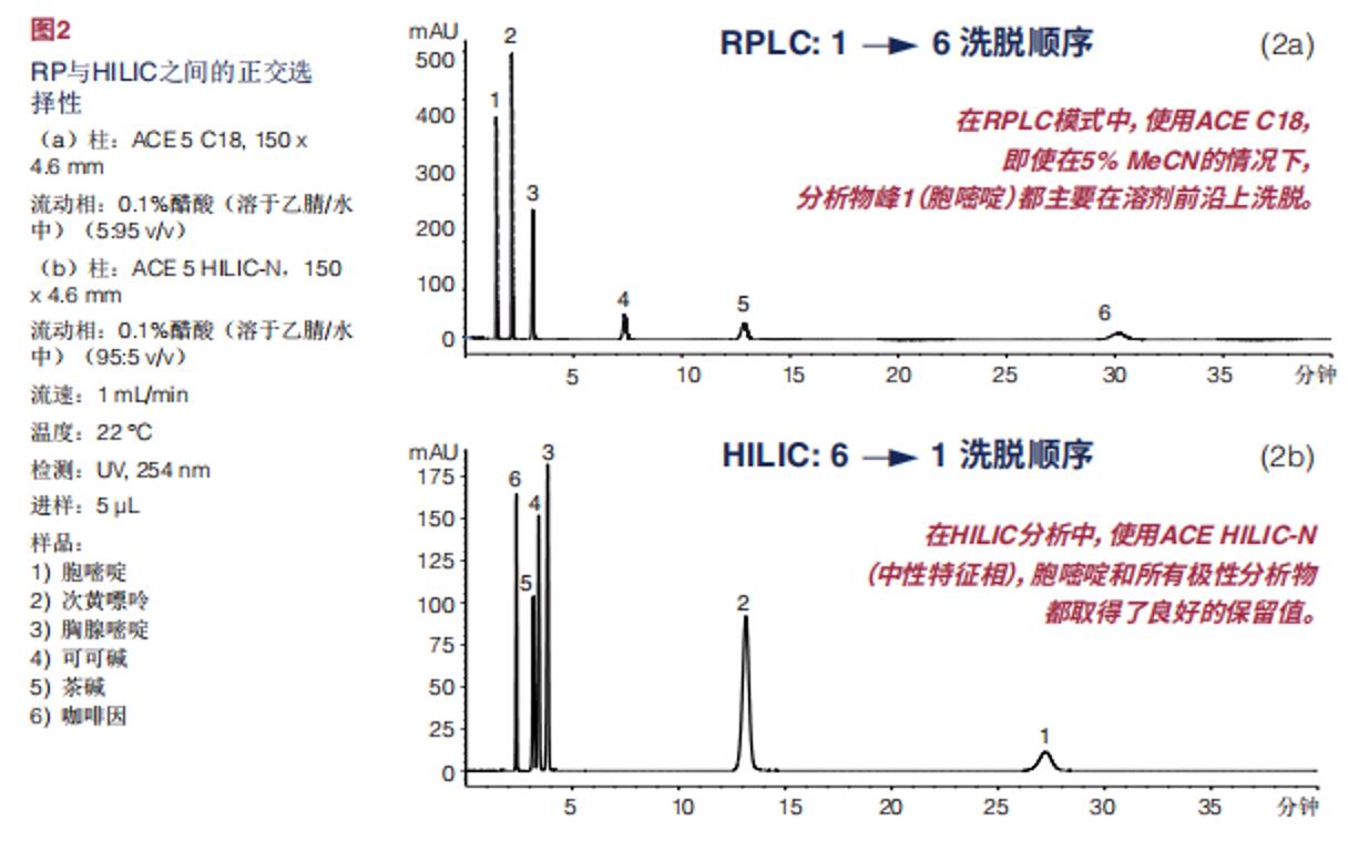 *碱性ACE HILIC-B相,能形成正电荷,对带负电的酸性物质产生静电吸引,而带正电的碱基(碱性物质则)则被排斥。