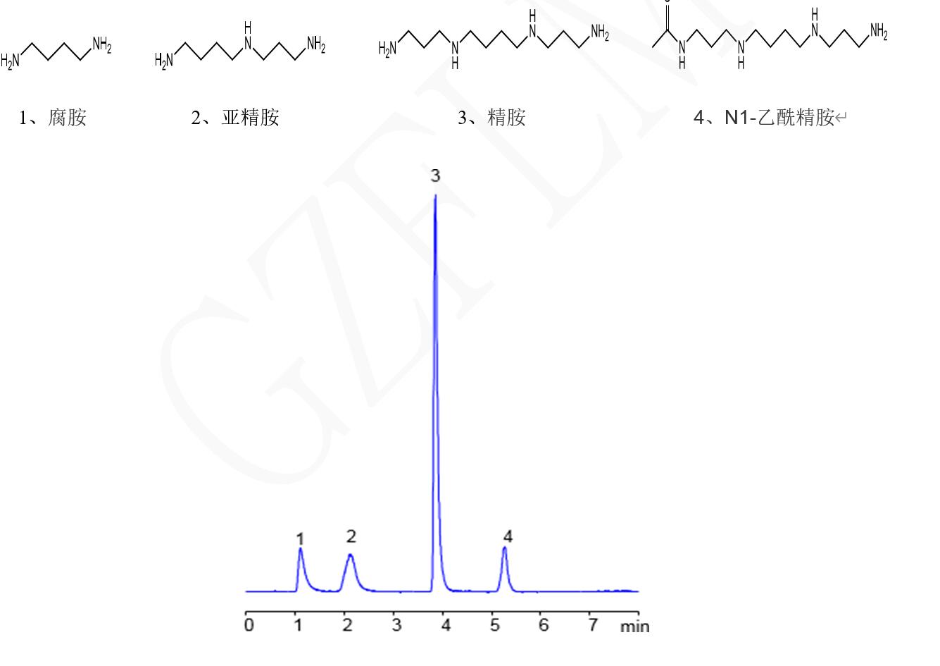 同时解决了精胺峰形差和无保留的问题。