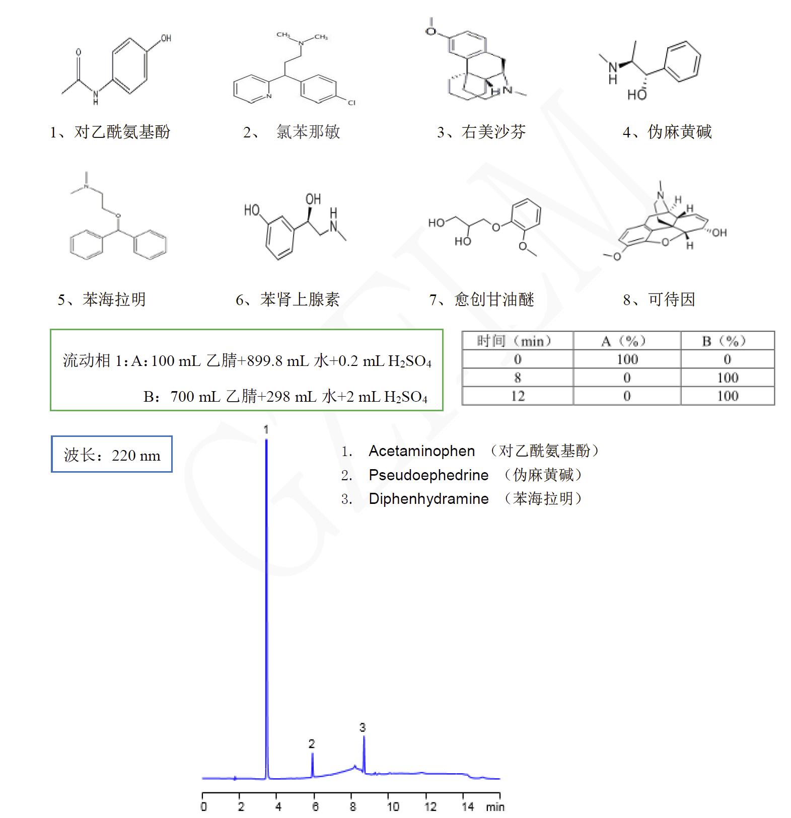 A:100 mL 乙腈+899.8 mL 水+0.2 mL H2SO4