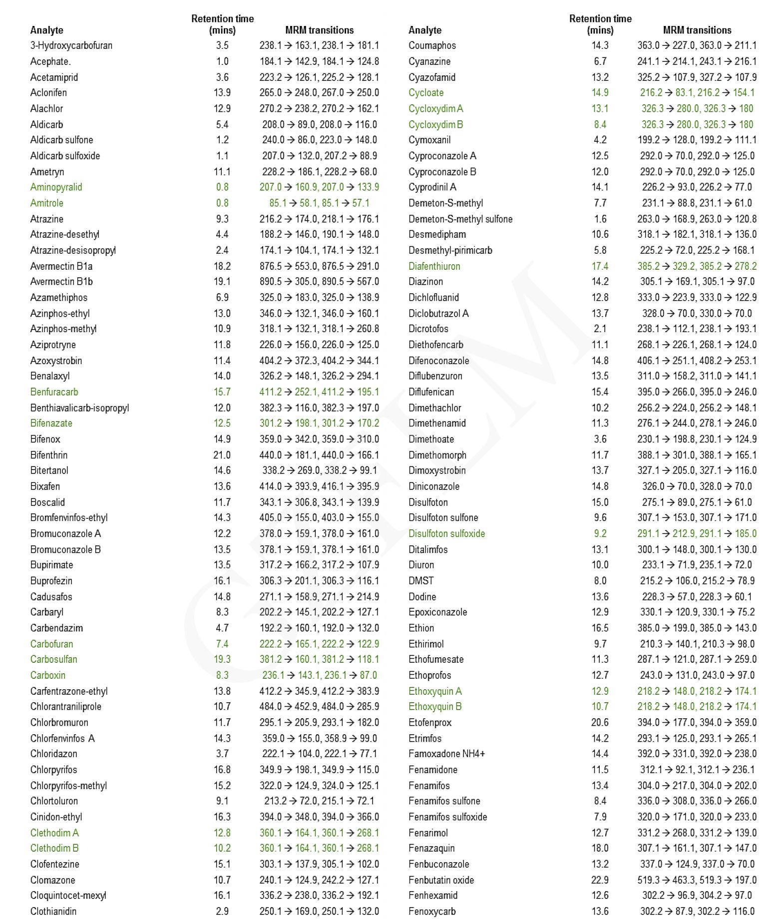 样品:样品制备采用 QuEChERs 方法,用黄瓜基质加标 0.01mg/kg 进行方法验证。