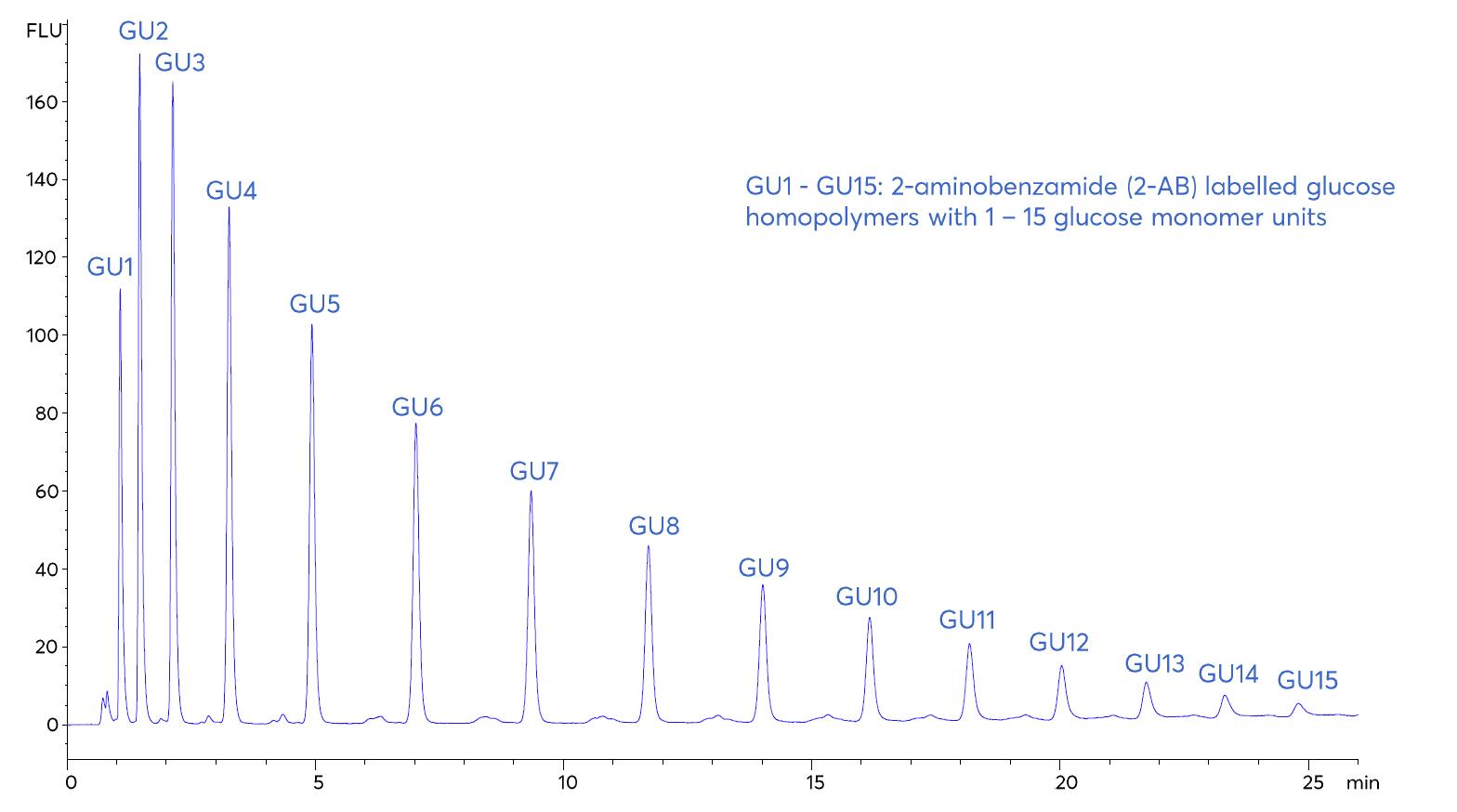 GU1 - GU15: 2-aminobenzamide (2-AB) labelled glucose homopolymers with 1 - 15 glucose monomer units
