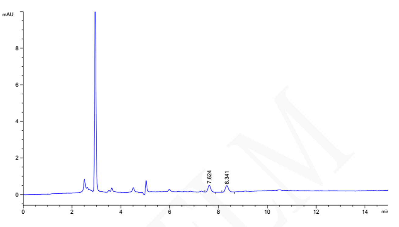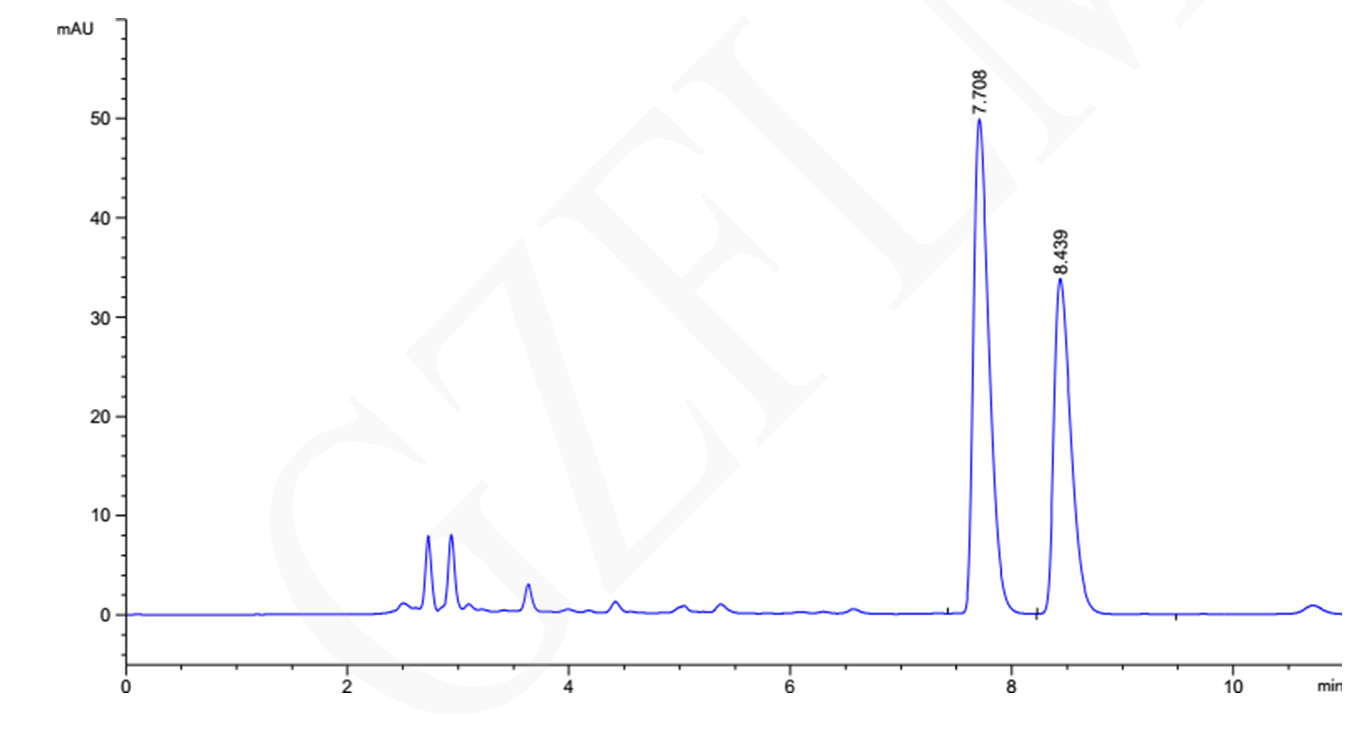 低浓度图谱:异亮氨酸 0.008 mg/mL 亮氨酸0.007 mg/mL