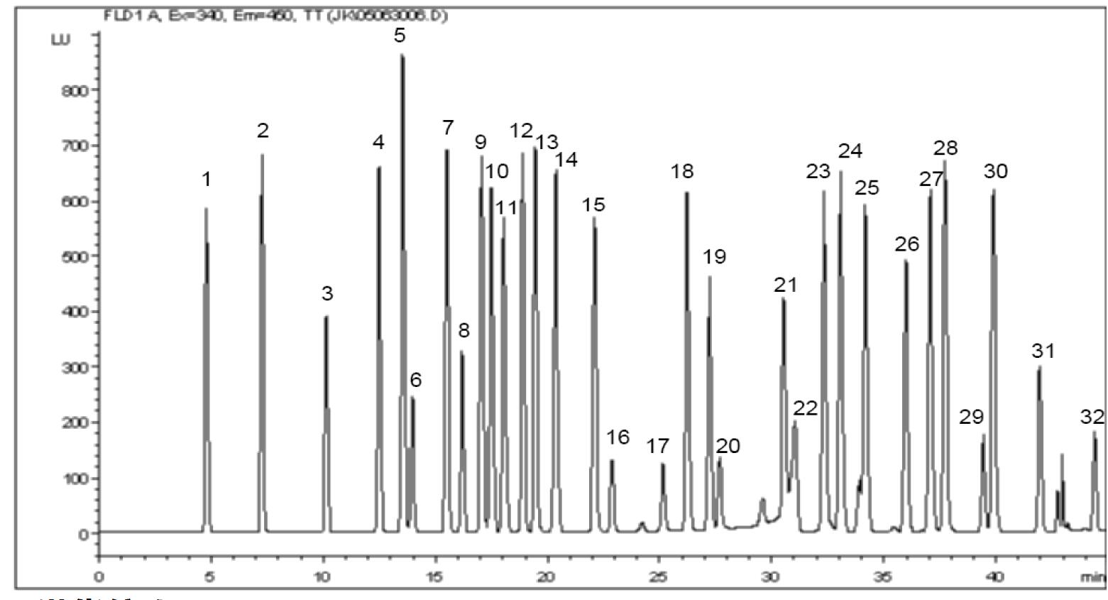 B、HPLC-UV OPA和FMOC衍生分析法 案例32种氨基酸
