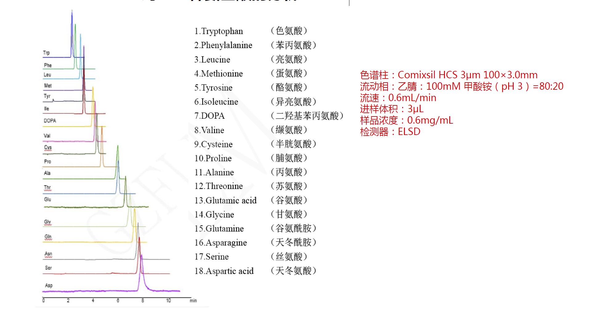 A.Comixsil HCS 对18种氨基酸的分析-ELSD