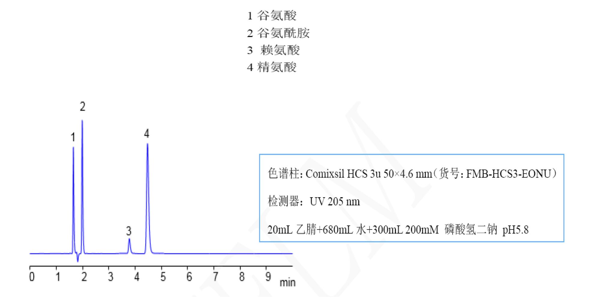 Comixsil HCS智能柱对赖氨酸和精氨酸的分析----UV检测器