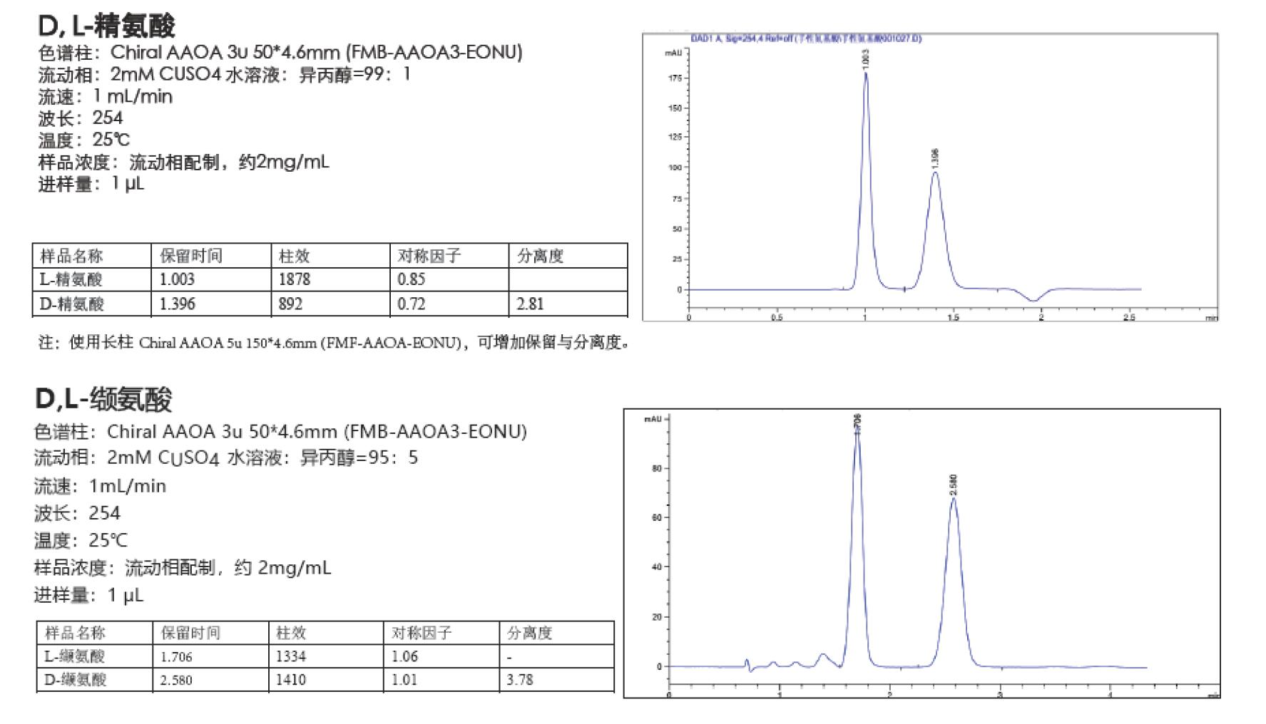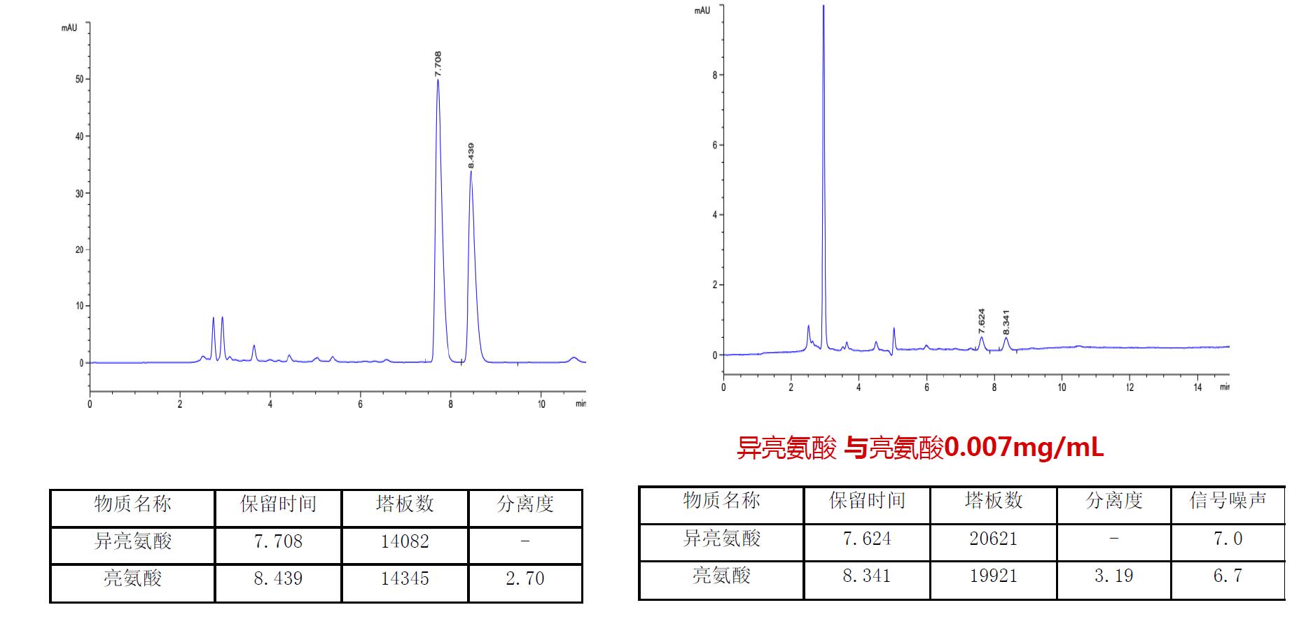 SuperLu C18 AQ对异亮氨酸与亮氨酸的分析UV检测器