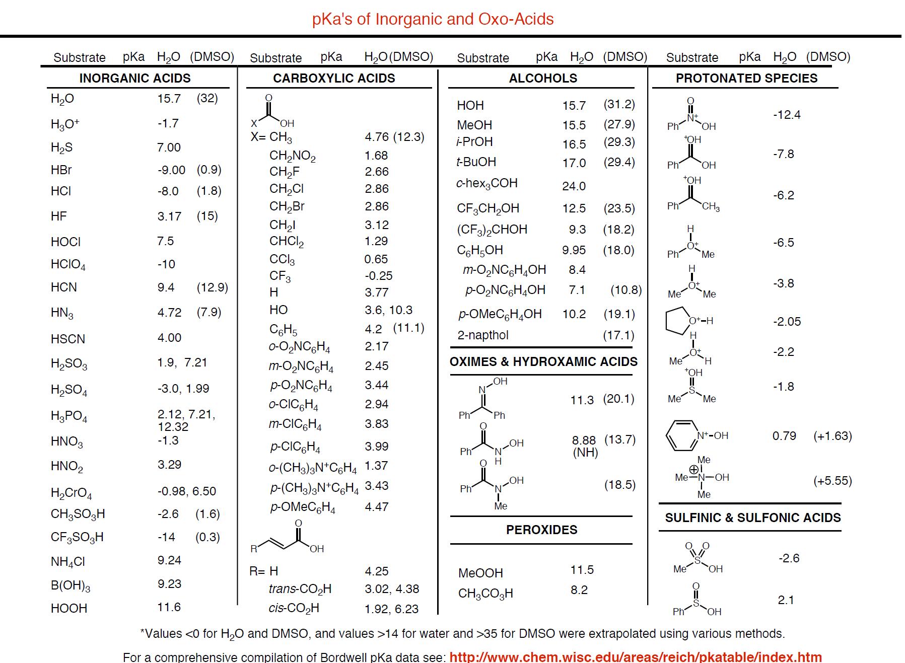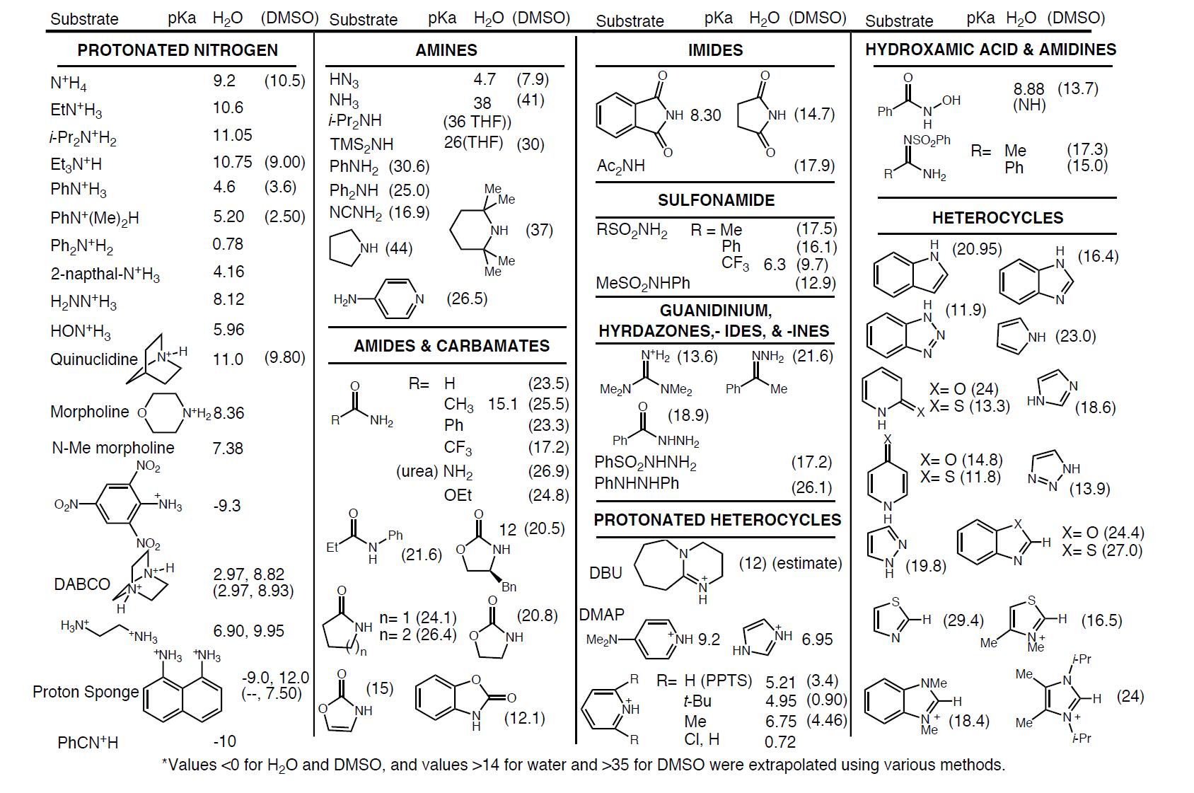 本文推荐哈佛大学 David Evans制作的化合物的pKa表, 包括以下化合物的pKa。