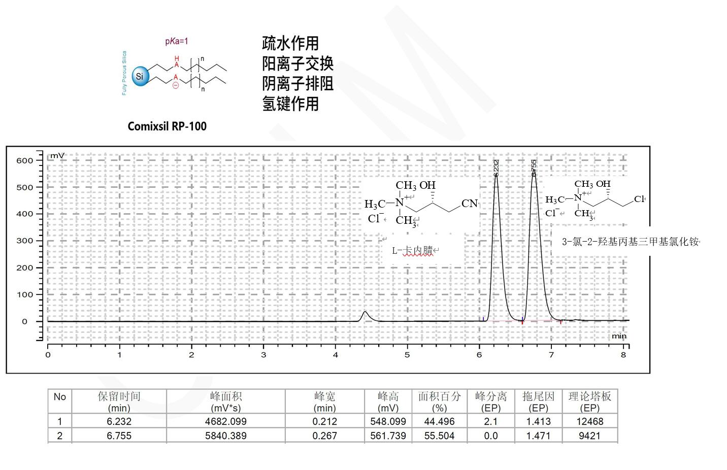 Comixsil RP-100 混合模式对 L-卡内腈和 3-氯-2-羟基丙基三甲基氯化铵的分析