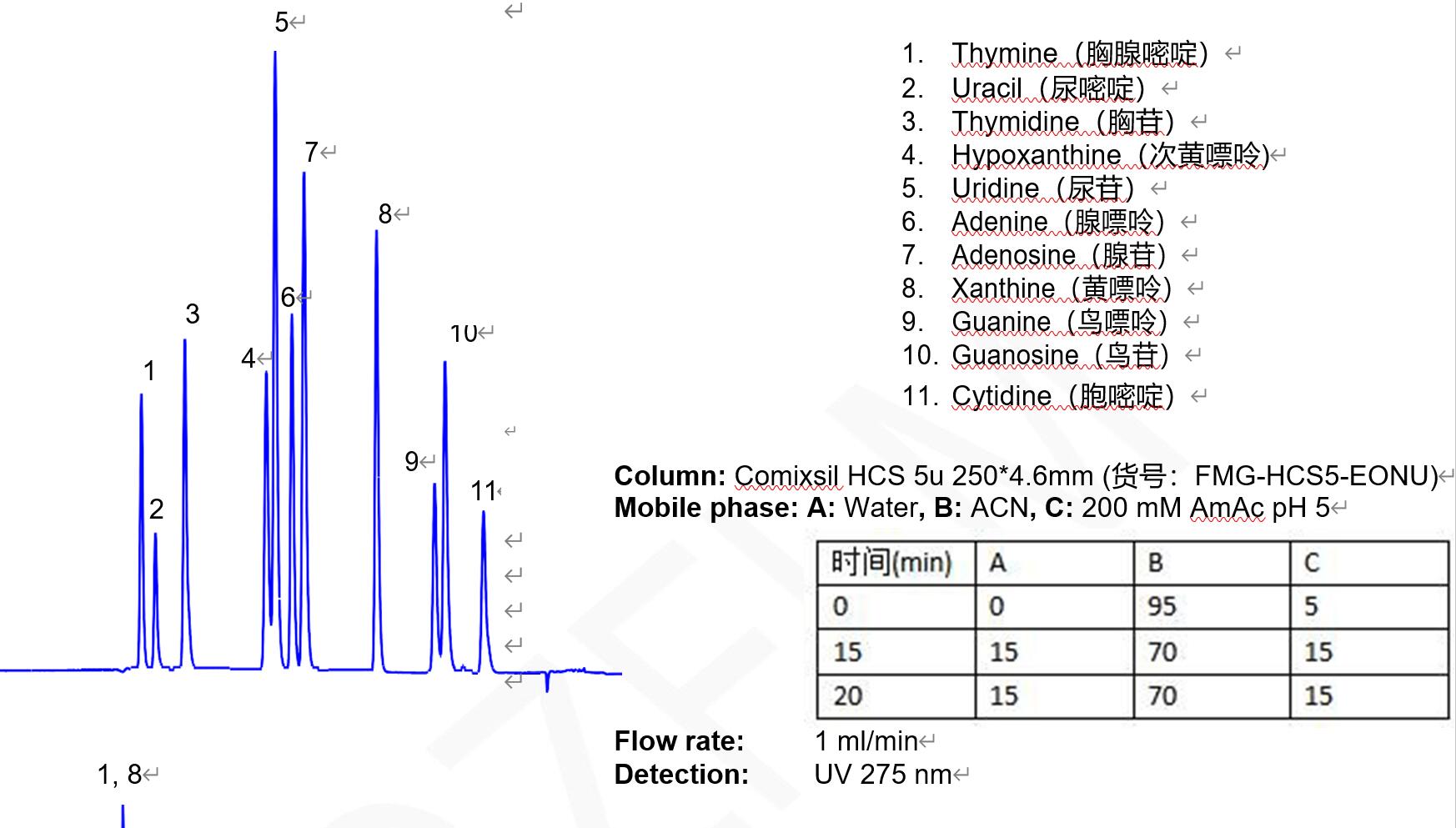 Comixsil HCS与Comixsil RP-100分析核酸碱基与核苷(MS匹配)