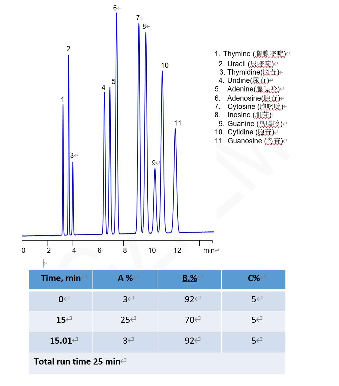 Comixsil HAC分离11种核酸碱基与核苷(MS匹配)
