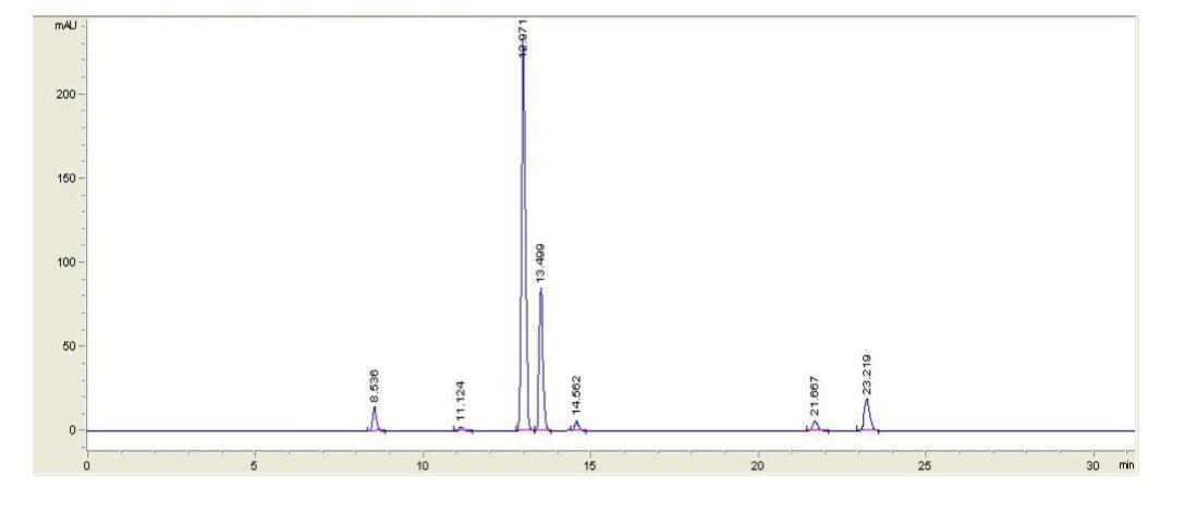 色谱柱:菲罗门 SuperLu C18(2) 5u 250*4.6mm(货号:FMG-5292-EONU) 流动相:A:20 mmol/L 乙酸铵溶液 B:甲醇