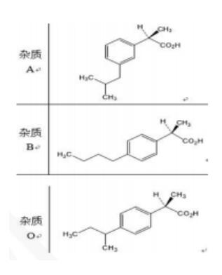 布洛芬是一种解热镇痛的非甾体抗炎药,主要通过抑制外周神经环氧合酶-2的合成以减少前列腺素(致痛成分)和炎症因子的产生,由此减轻组织充血和降低神经痛觉的敏感性,从而达到镇痛的效果。在解热方面,布洛芬主要通过作用于下丘脑的体温调节中枢,降低其异常兴奋型,调节神经来扩张皮肤血管,增加排汗量使皮肤散热;同时稳定白细胞内溶酶体膜, 阻碍致热原的释放,达到降低体温的效果。 布洛芬在合成制备过程中会产生多种杂质,典型的是间异丁基布洛芬,也被称为布洛芬杂质A,是一种布洛芬的位置异构体。 布洛芬分子中含有一个手性中心,是一种手性药物,有两个互为镜像的对映异构体,S(+)-布洛芬和R(-)-布洛芬(如图2),二者在药理方面具有明显区别。国家开始有要求检测对映异构体。 布洛芬的大多数色谱分析需求也来源于以上两种原因。