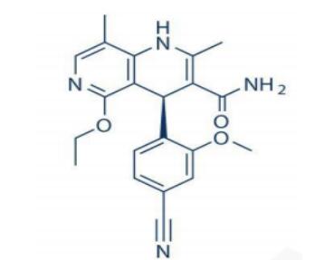 非奈利酮手性异构体分析方法研究 非奈利酮(Finerenone),是由德国拜耳制药公司开发的第三代高选择性非甾体类盐皮质激素受体拮抗药,化学名为(4S)-4-(4-氰基-2- 甲氧基苯基) -5- 乙氧基-2,8- 二甲基-1,4-二氢-1,6- 萘啶-3- 甲酰胺,化学式为C21H22N4O3,分子量为378.424,结构式如下图。