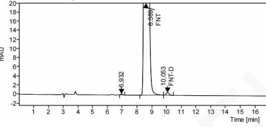 二、非奈利酮手性异构体的反相方法分析(适合原料药以及制剂剂型的分析研究,反相方法对制剂样品前处理直接简化) 方法:自订 色谱柱:Chiral INC 3u 250*4.6mm (FMG-JY3-I03) 流动相及色谱条件:反相(详询销售代表)
