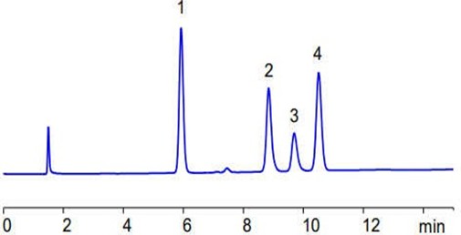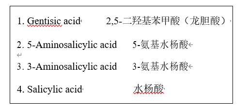 App ID: FLM-P250001 Primesil A 关于水杨酸及氨基水杨酸位置异构体的分析 方法:自定 色谱柱: Primesil A 3u 150*3.0mm (货号:A-3015003) 流速:0.6 mL/min 柱温:35℃ 检测波长:232nm 流动相: