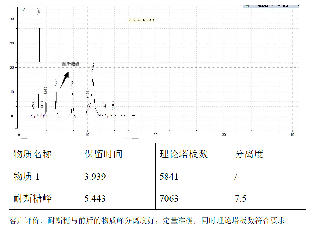 App ID: FLM-T250003 Titank C18 柱对巴戟天的含量测定 方法:《中国药典》2020 版一部 色谱柱:Ttiank C18 5μ 250*4.6mm (货号:FMG-5560-EONU)) 流速:1 mL/min 检测:ELSD, 漂移管温度80°C,流量:3.0L/min 样品浓度:客户根据药典配置 进样量:20 μ 流动相:甲醇:水=97:3 色谱图: ![]() |