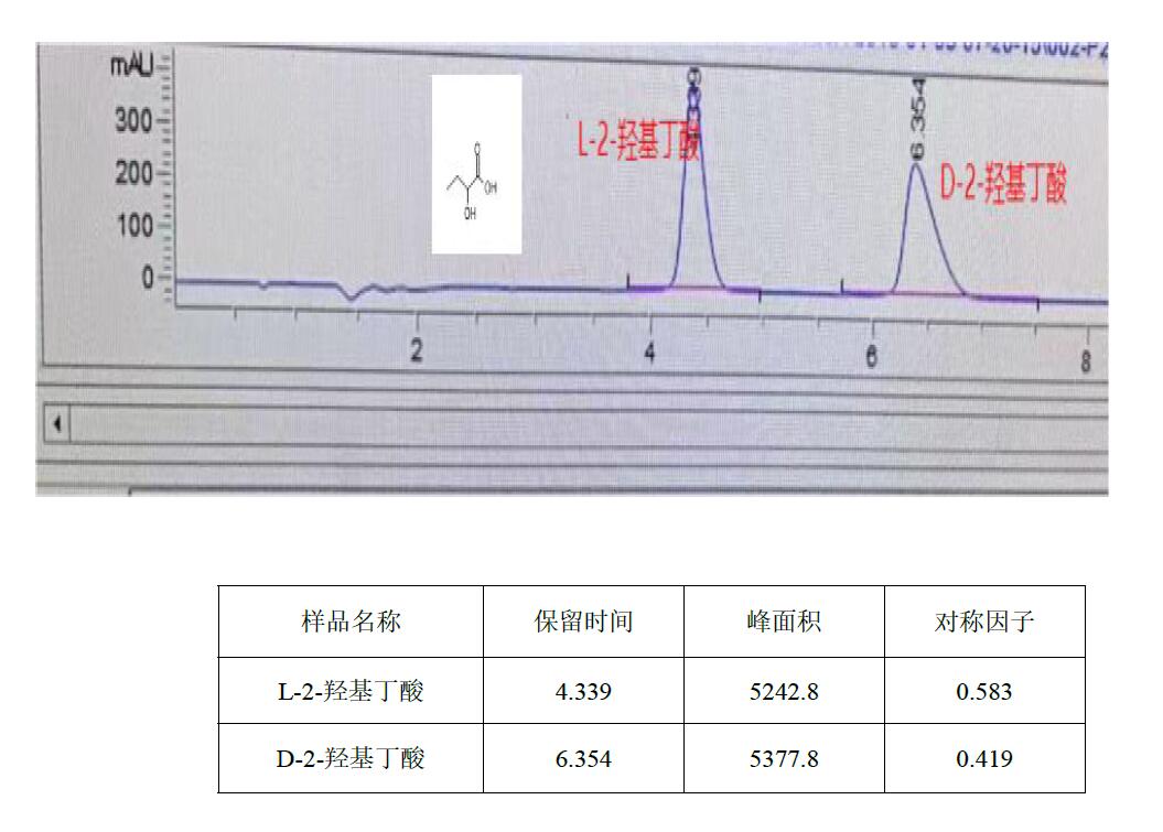 App ID: FLM-B250018 D, L-2-羟基丁酸手性拆分 色谱柱:Chiral AAOA 3μ 50×4.6mm (FMB-AAOA3-EONU) 流动相:2mM CUSO4 水溶液:异丙醇=95:5 流速:1 mL/min 波长:230nm 温度:25℃ ![]() |