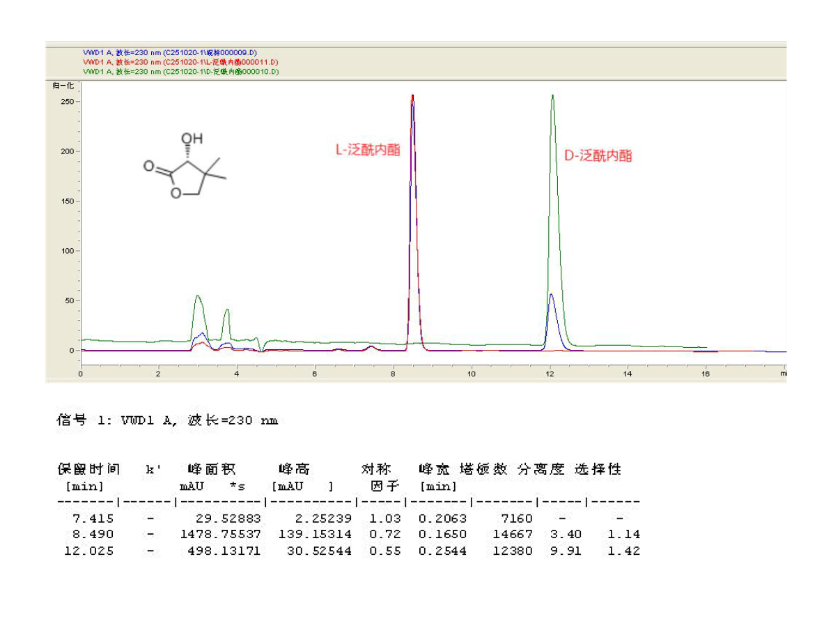 DL-泛酰内酯(又名DL-泛解酸内酯)手性拆分