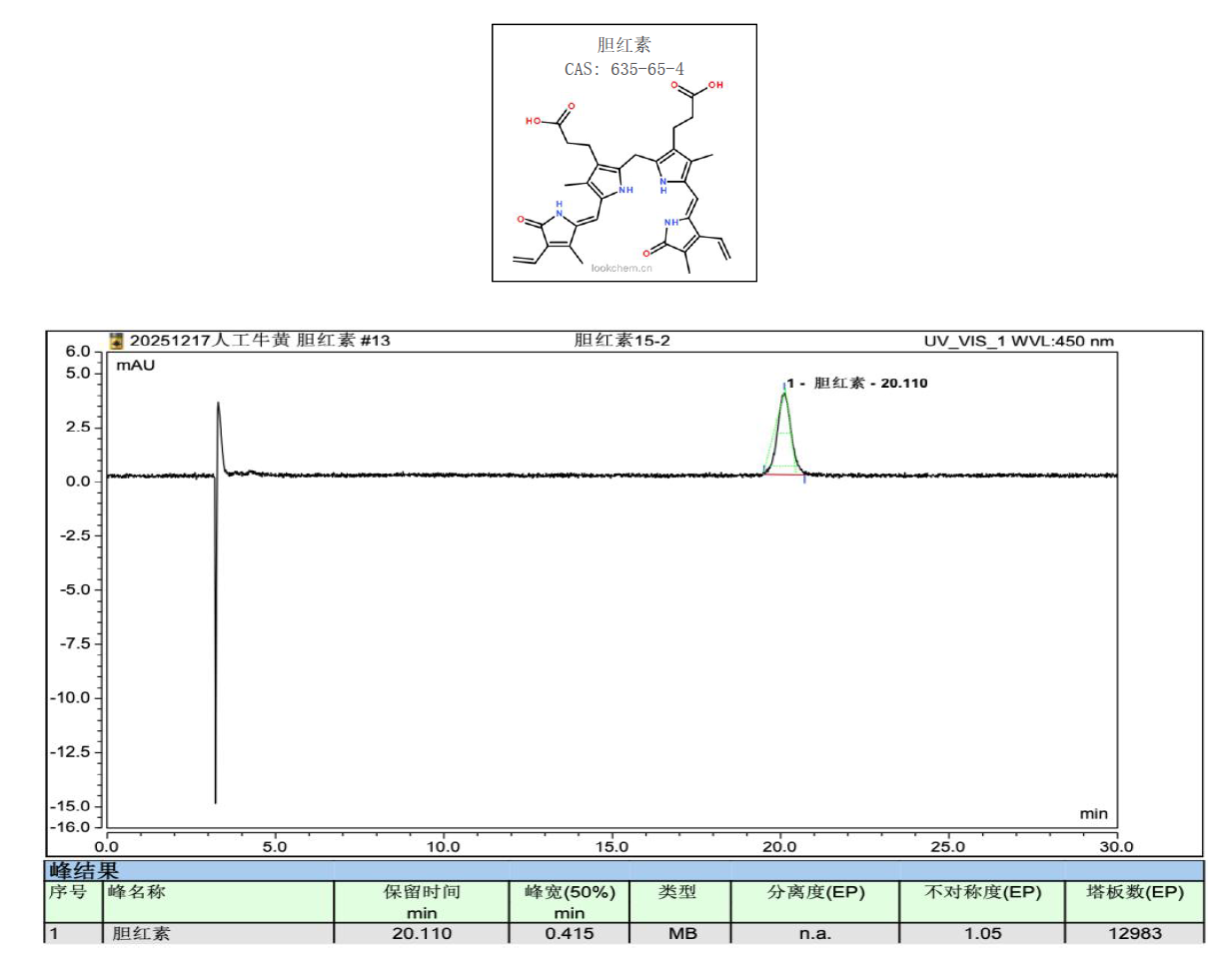 App ID: FLM-T250006 Titank C18 对人工?;浦械ê焖睾坎舛?/span> 方法:中国药典2025 一部 色谱柱:Titank C18 5μ 250×4.6mm (货号:FMG-5560-EONU) 流动相:乙腈:1%冰醋酸溶液=95 : 5 流速:1mL/min 检测:UV 450nm 温度:25℃ 样品浓度:2mg/mL(药典规定) 进样量:5uL 标准品色谱图: ![]() |