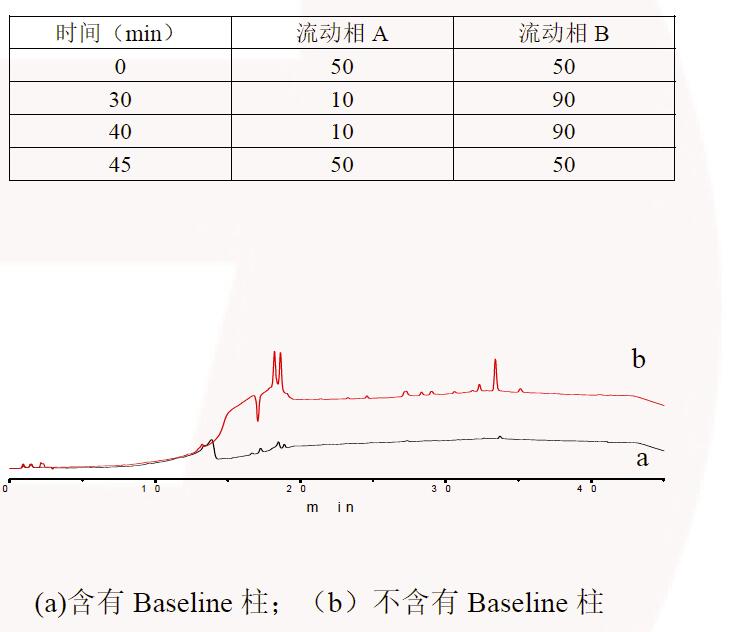 案例 2 案例展示中,已充分展现 Baseline 基线稳定柱的功用与意义。 在使用过程中还必须注意以下情况: 1、不能把Baseline 柱当做保护柱接于色谱柱前面使用。因为 Baseline 特殊的材料,如果当?;ぶ?,有可能把分析工作者的分析物也吸附掉产生不出峰的情况;