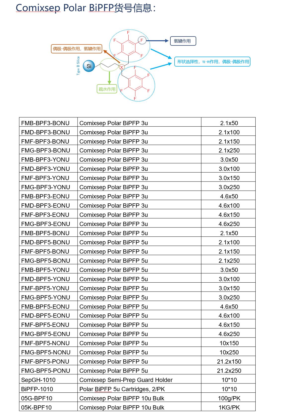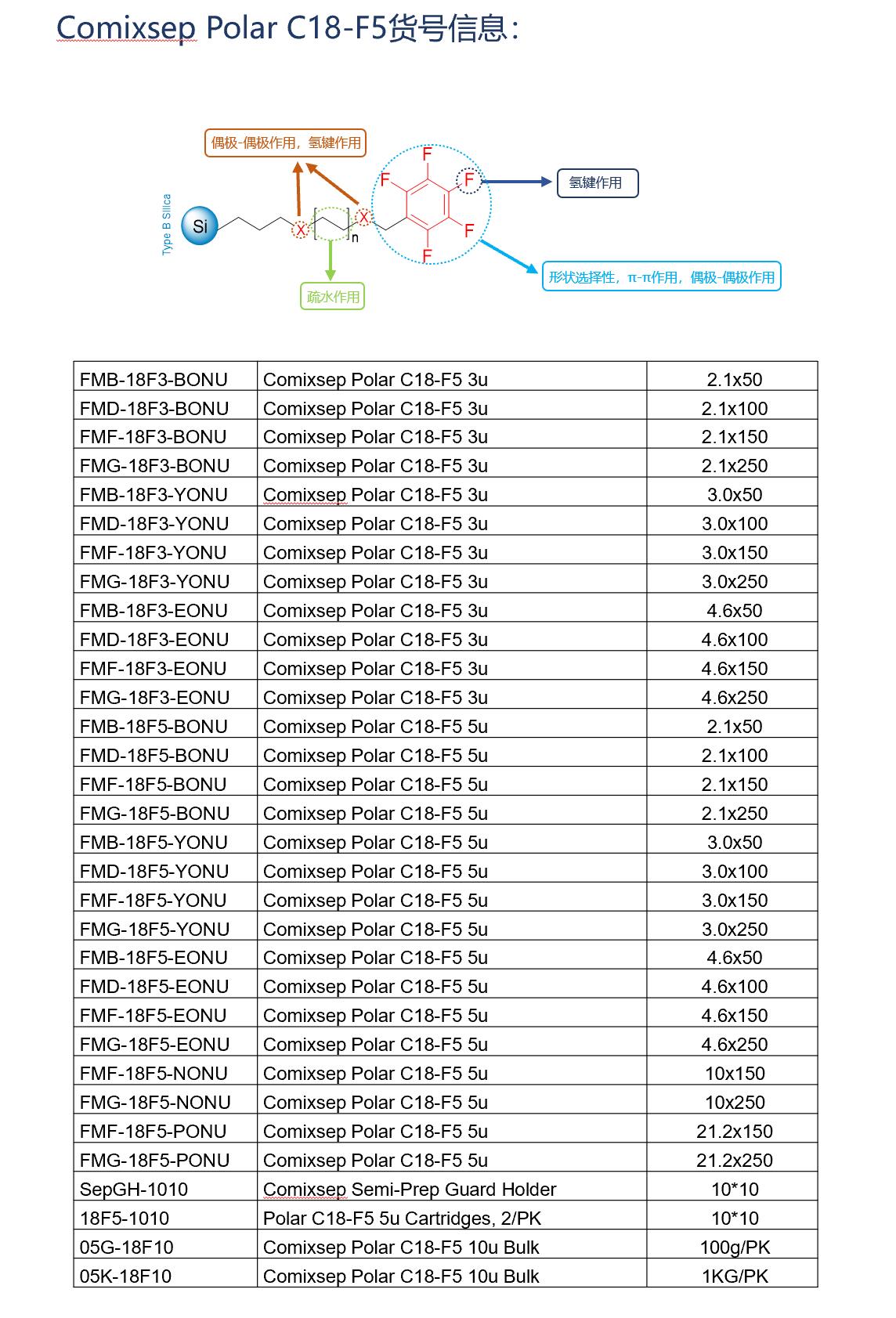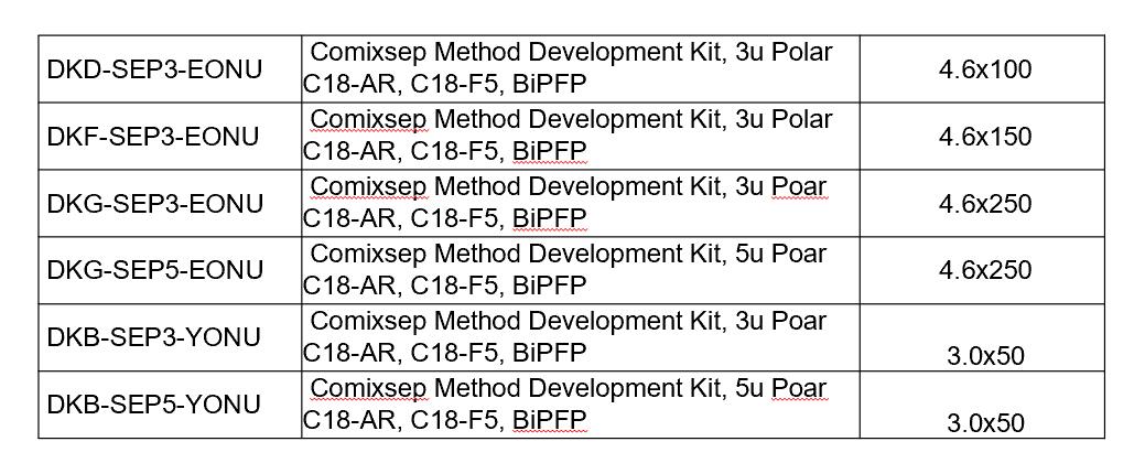 Comixsep复合反相固定相方法包货号信息