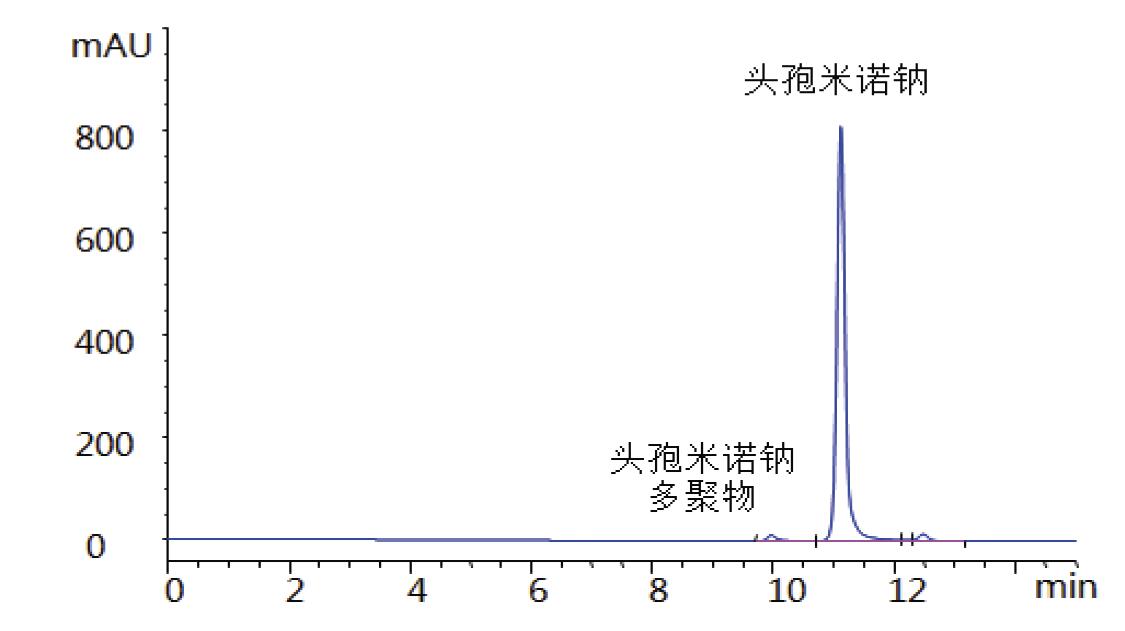 样品:1 mg/mL 头孢米诺钠(0.1 M NaOH 破坏)