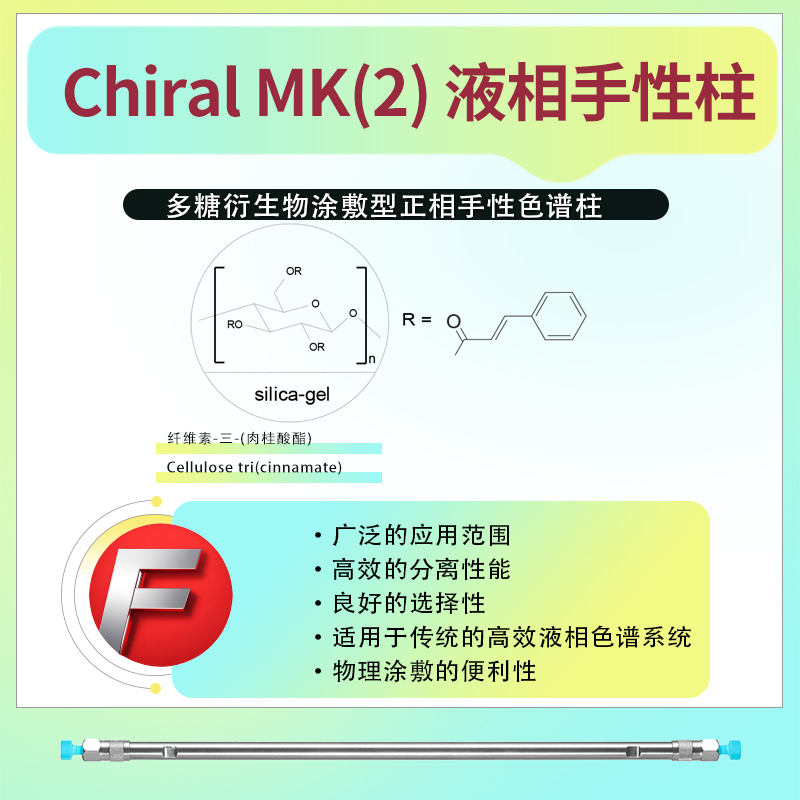 - Chiral MK(2) 液相手性色谱柱 Chiral MK(2)液相手性色谱柱是菲罗门公司FLM?Chiral系列中的一种涂敷型手性柱