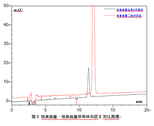 进样体积:20 μL(供试品中培美曲塞浓度 0.24 mg/mL,异构体杂质 E 浓度 0.16 μg/mL)