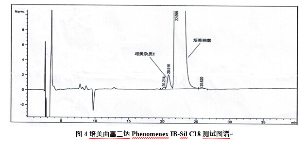 备注:按照欧洲药典标准,客户原先所使用的色谱柱为 Phenomenex IB-Sil 5um C18 120?(250 x 4.6 mm),
