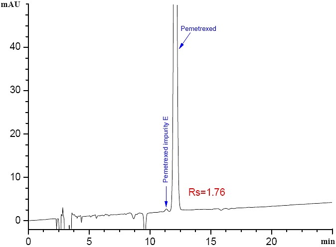 进样体积:20μL(供试品中培美曲塞浓度为 0.24mg/mL,对映体杂质浓度为 0.16μg/mL)
