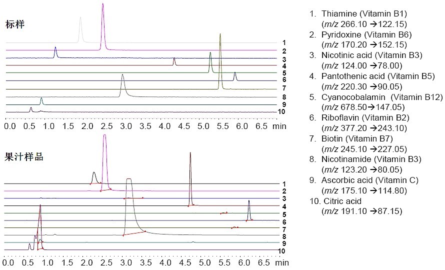 果汁中水溶性维生素分析的快速 LC-MS 方法