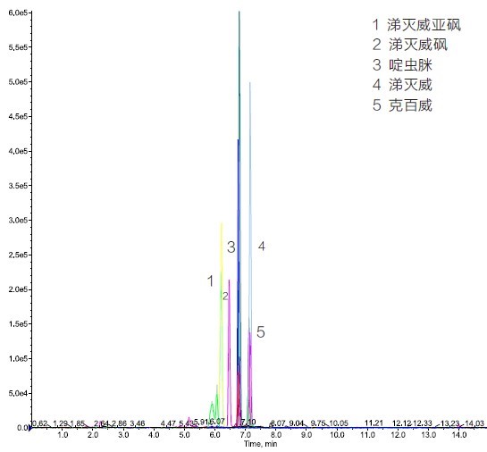 图 2 添加水平为 0.0625 mg/kg 普洱中氨基甲酸酯类农药多残留检测色谱图