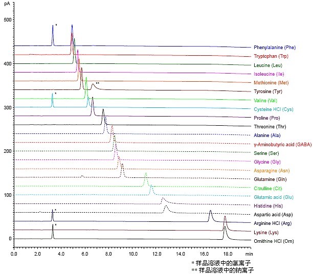 色谱柱:Titank HILIC 5μm 150×4.6mm(货号:FMF-5568-EONU) 流动相:A:100mM甲酸-甲酸铵溶液(pH 3.6)