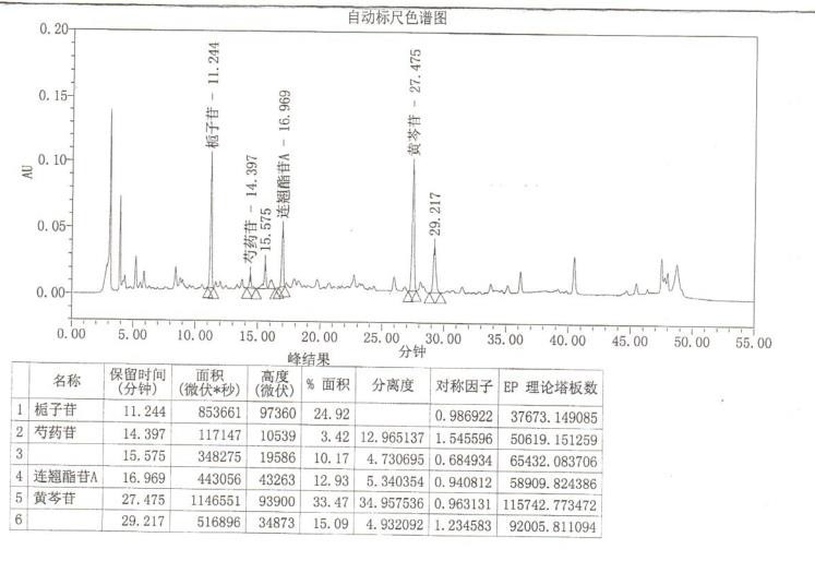 药典要求:理论板数按黄芩苷峰计算应不低于3000