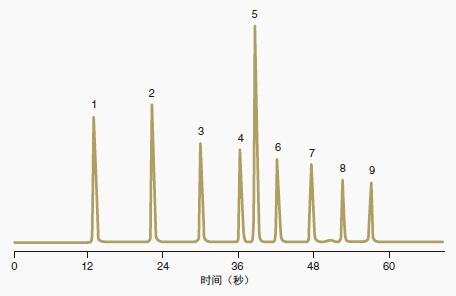 ACE Excel C18色谱柱可在不到60秒内提供这9种分析物的基线分离。