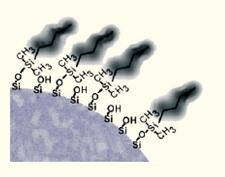 图9. 通过利用有机氯硅烷将疏水性配体化学键合到硅胶表面形成了疏水界面。